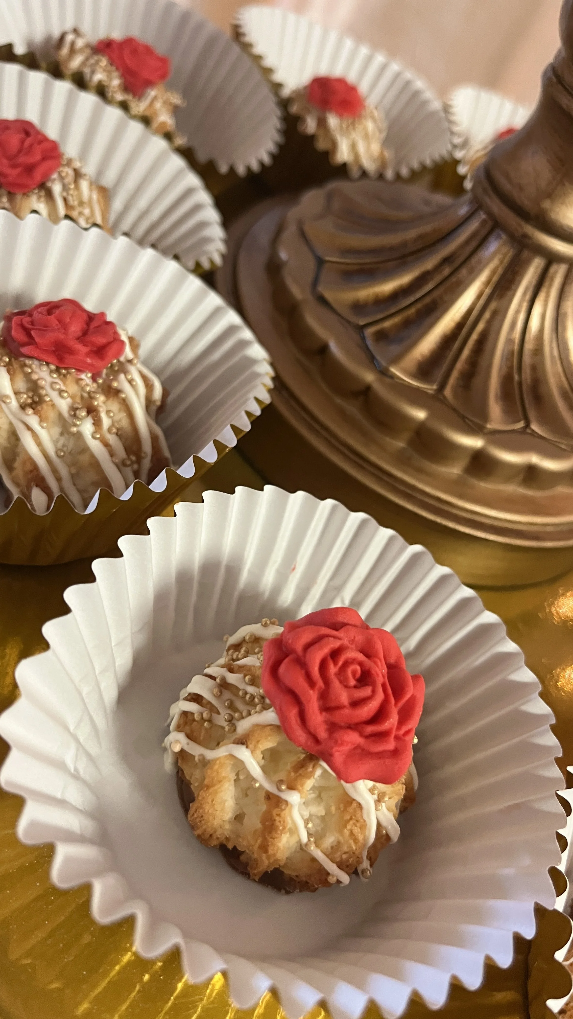 (Vanilla cake filled with pastry cream and coconut covered in whipped cream)